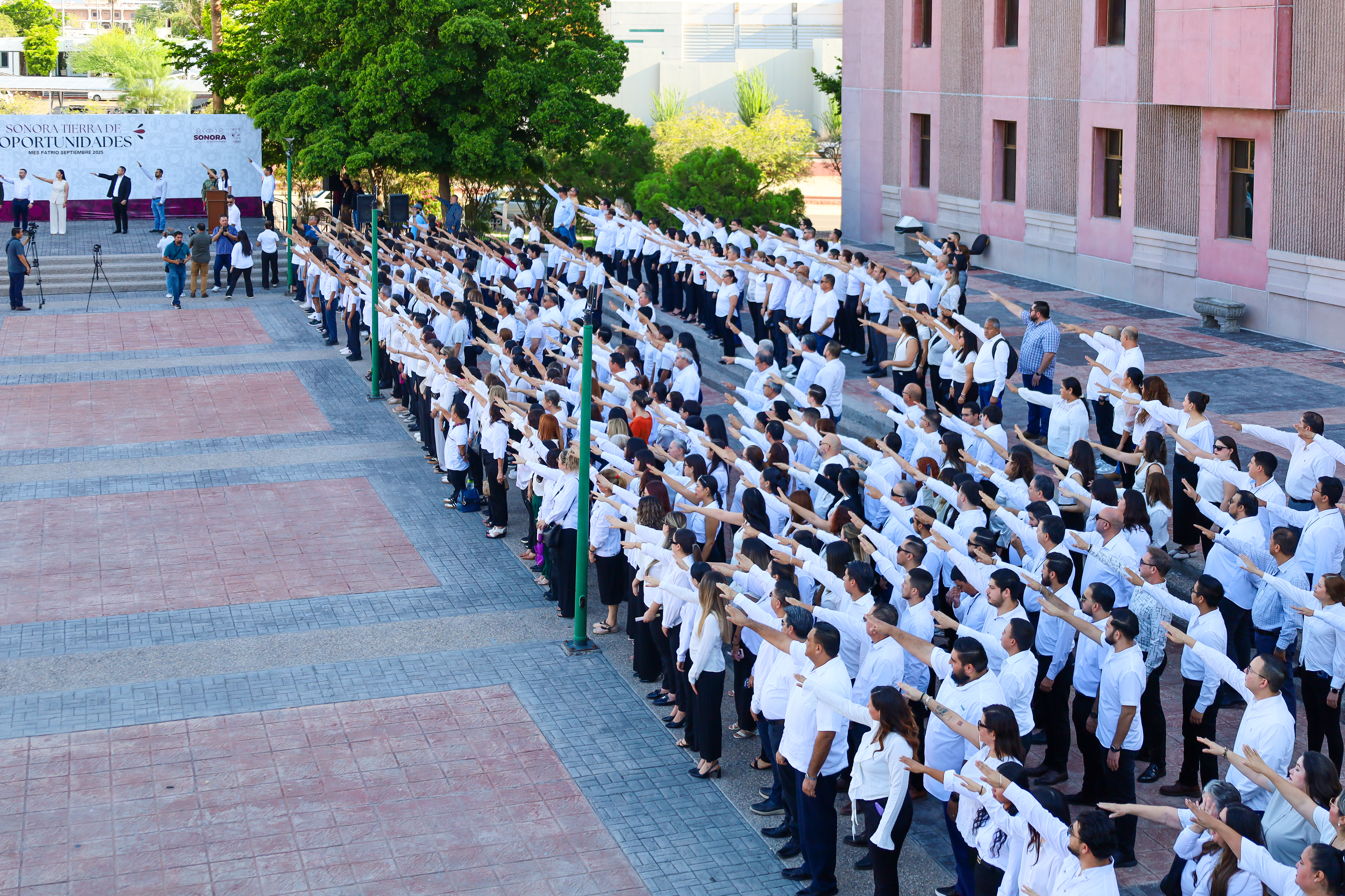 El personal de la Secretaria del Trabajo y del Instituto de Capacitación para el Trabajo del Estado de Sonora (ICATSON), asistieron con orgullo a la ceremonia cívica de Honores a la Bandera, reafirmando el compromiso con los valores patrios, el respeto a los símbolos nacionales y la formación cívica de nuestra comunidad educativa.