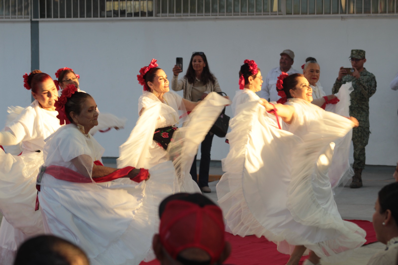 La presentación de baile folklórico por parte del Ballet del Centro Comunitario para el Adulto Mayor “Azomali” aportó un ambiente festivo, así como la Banda Sinfónica Juvenil Municipal de Caborca y la Escolta de Bandera del 28 Regimiento de Caballería Motorizado.