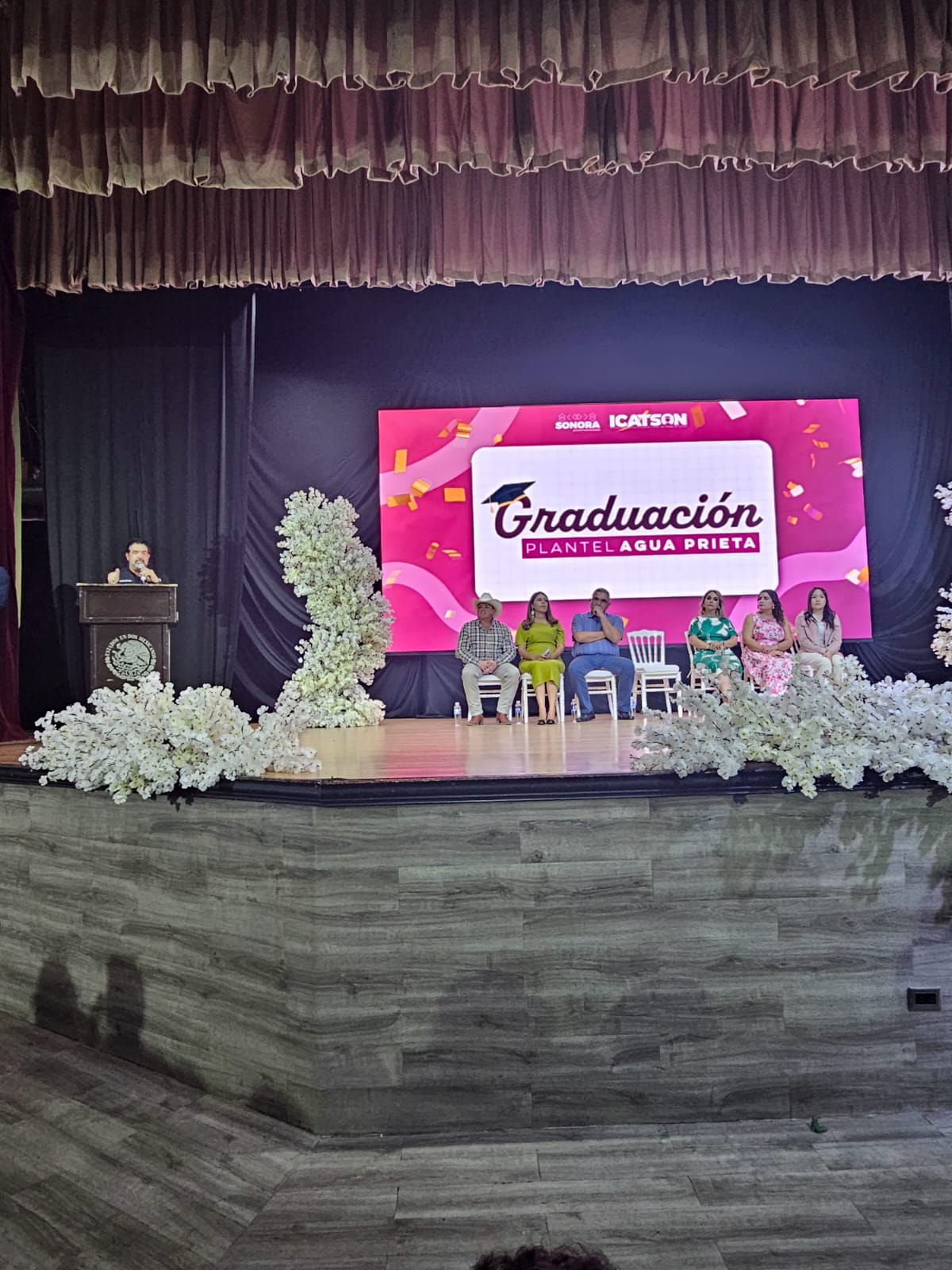 Presentes: en representación del Presidente Municipal, José Manuel Quijada, asistió el Secretario del Ayuntamiento, Manuel Molina Ley, en representación del Alcalde de Bavispe, Conrado Durazo Montaño, acudió la síndico, Luz Del Carmen Morales Ruiz, la Presidenta Municipal de Bacerac, Virgen Ignacia López Valenzuela, el Presidente Municipal de Fronteras, Israel Quijada Hérnandez, el Director General del Icatson, Manuel Gallegos Salgado, la directora del plantel Agua Prieta, Magda Elena Heredia Quiroga y la alumna Salma Shaddey Vizcarra Arellanes.