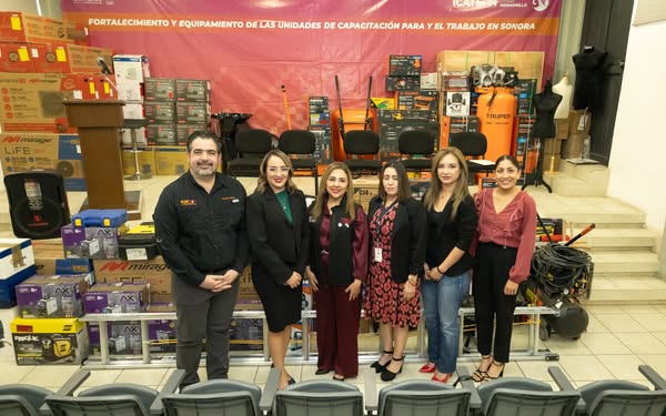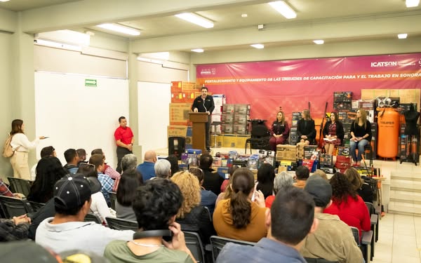 Alfonso Durazo , realizó la entrega de equipamiento y mobiliario en Plantel Hermosillo beneficiando a un gran número de áreas de capacitación, como refrigeración y aire acondicionado, electricidad, confección industrial de ropa, estilismo y diseño de imagen, alimentos y bebidas, diseño y fabricación de muebles de madera, electrónica, mantenimiento electromecánico del automóvil, así como de mantenimiento.
